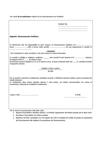 Fac simile di una proposta finanziamento soci fruttifero